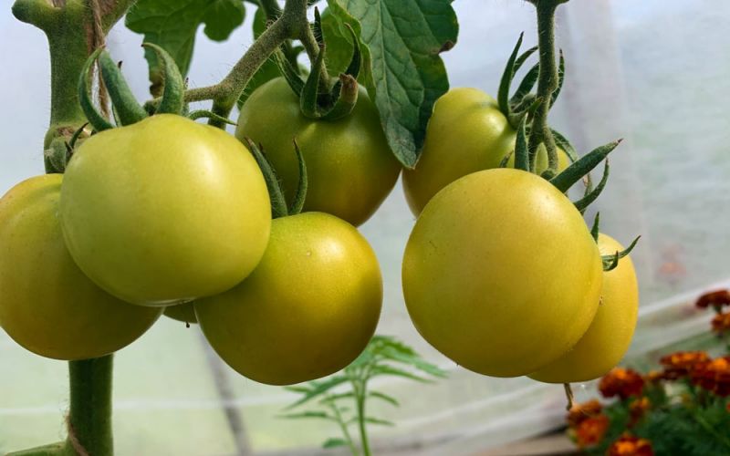 Томаты Долгохранящийся (позднеспелый сорт). Хранятся плоды до 6 месяцев, посев 3 марта, высажен в теплицу 13 мая. Томат Санькина любовь (среднеспелый сорт), уникальные плоды по форме, очень урожайный, куст компактный (посев 11 марта), высадка в теплицу 18 мая. Томат Семейное счастье – скороспелый индетерминантный сорт, плоды сердцевидные, крупные, до 1 кг (посев 3 марта, высадка 13 мая).