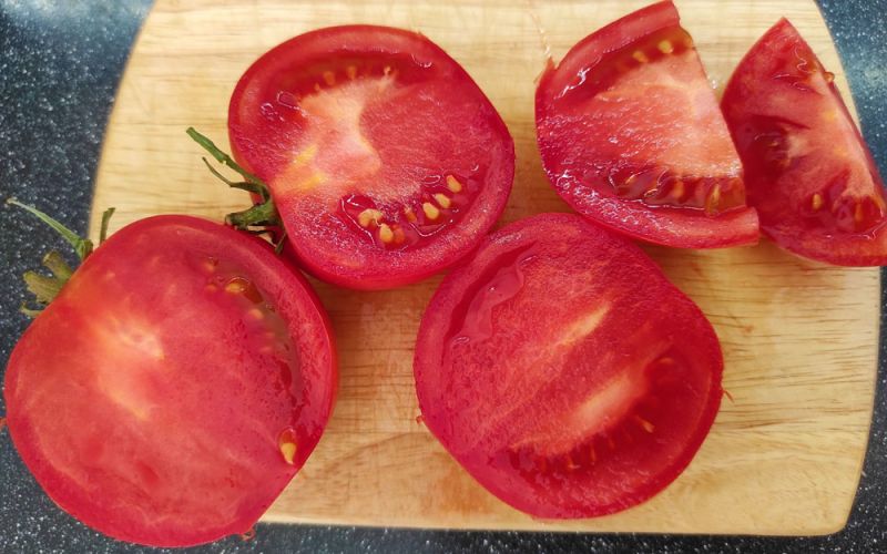 Бытует мнение, что гибриды по вкусу уступают сортам. А вот и нет, сортов у меня очень много, сравнить есть с чем. Третьяковский оказался одним из самых вкусных помидоров этого лета. Кисло-сладкий, насыщенный, именно такой, каким и должен быть настоящий томат. Он понравился всем в нашей семье и очень понравился родителям. Оставила на свежие салаты, такие помидоры жалко отправлять в переработку. Стенки плотные, должен хорошо храниться. На следующий год обязательно посажу побольше кустов.