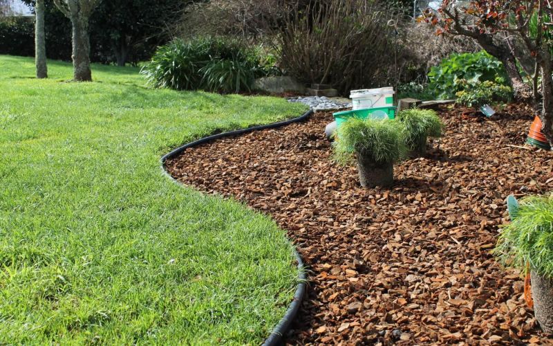 Периметр цветника можно оформить пластиковым кантом, кант вкапывается, со стороны цветника лучше оставить выше уровня земли, примерно 3 см. Это необходимо, если предусмотрена отсыпка мульчей коры хвойных парод (из расчёта 50 л - 1 мешок - на 1 м2). На представленный цветник площадью 7 м2 понадобится 7-9 мешков. Фракцию лучше выбирать среднюю. Укладка геотекстиля, как основы под мульчу, не требуется. Мульчирование поможет уменьшить количество сорняков и сохранить влагу.