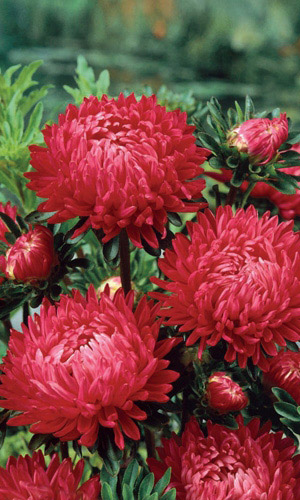 Классическая пионовидная срезочная астра! Куст колонновидной формы, ветвистый, высотой около 70 см. Цветоносы прочные, густооблиственные. Соцветия полушаровидные, густомахровые, 8-10 см в диаметре. Язычковые цветки широкие, приподняты вверх, закрывают трубчатые цветки...