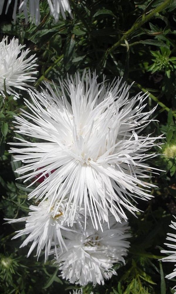 Густомахровая игольчатая астра! Растения высотой около 60 см. Соцветия густые длинноиголчатые, белые, кремово-жёлтые, серебристо - голубые, фиолетовые, серебристо - розовые, красные. Цветет в августе - сентябре. Используют очень широко: для посадки в сборные цветники...