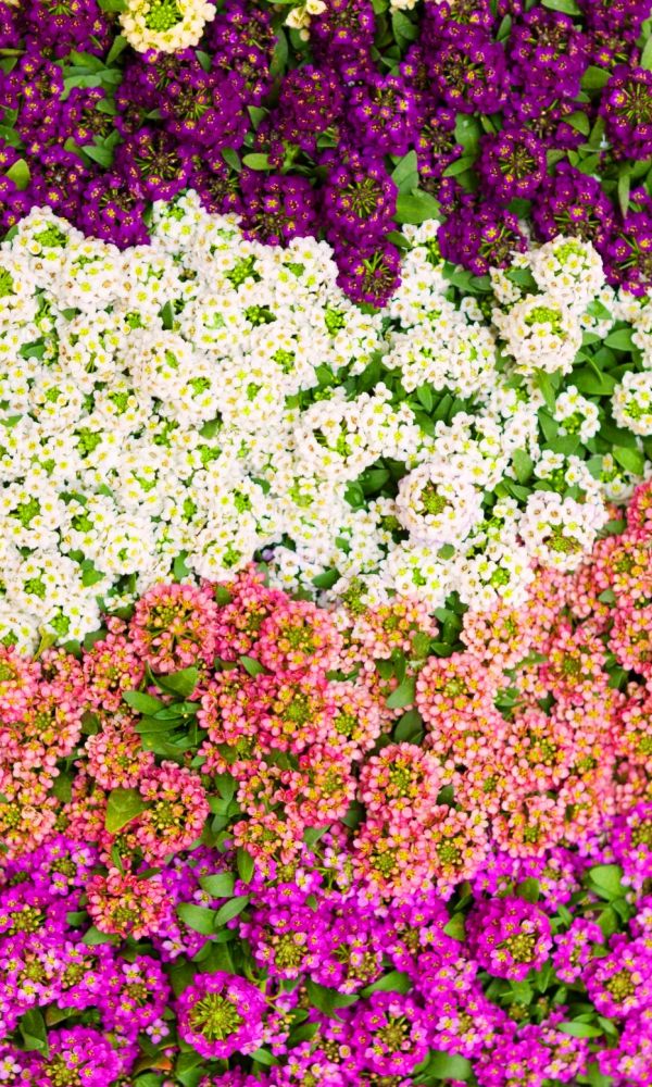 Нежный аромат. Миниатюрное растение с мелкими цветками с медовым запахом. Растение невысокое, до 20-25 см. Образует плотный, стелющийся ковёр белого цвета. Листья узкие, ланцетные. Используют для обрамления клумб, балконных ящиков, на каменистых горках, рокариях, для посадки между плитками дорожек...