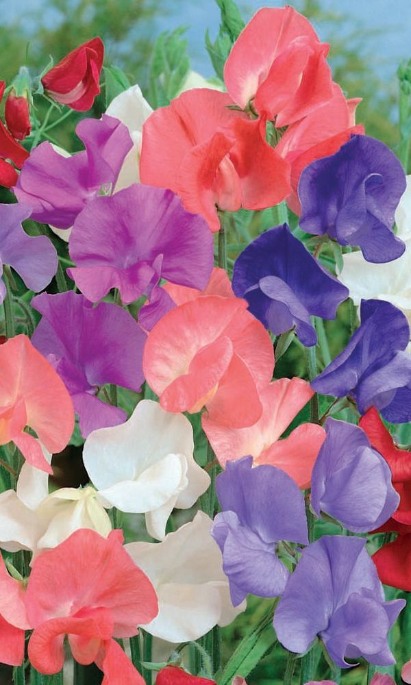Лиана, высотой до 2,5 м. Смесь отличается самым высоким ростом, самыми крупными размерами цветка, длинными и прочными цветоносами. Цветки красивой, изысканной формы,с гофрированным краем, душистые, собраны в небольшие кисти по 3-5 цветков.Посев: март - апрель в горшки по 3...