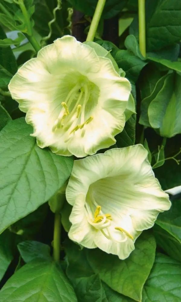 Вьющаяся лиана с перистыми, морщинистыми листьями, которые оканчиваются разветвлённым усиком, при помощи которого растение закрепляется на опоре. Цветки нежного белого цвета, колокольчатые, 6–8 см в диаметре, с длинными тычинками и пестиком, выходящими наружу цветка...