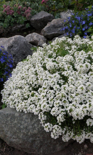 Нежный аромат. Миниатюрное растение с мелкими цветками с медовым запахом. Растение не высокое, до 15 см. Образует плотный. стелющийся ковер белого цвета. Листья узкие, ланцентные. Цветёт с июня до осени. Используют для обрамления клумб, балконных ящиков, на каменистых горках и т. д...