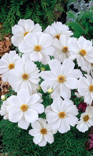 Роскошное однолетнее растение со множеством огромных цветков. Необыкновенные, восхитительные, белоснежные цветки «парят» над ажурными листьями пышного куста. Идеально подходит для посева в смешанных цветниках, клумбах и бордюрах, особенно большими массивами...
