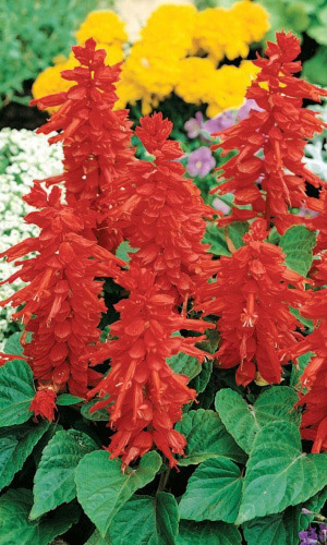 Яркие эффектные соцветия. Растение обратнопирамидальной формы, густооблиственное, компактное, высотой 20-30 см. Цветки ярко-красные в мутовках по 2-6, крупные, с двойным околоцветником, собраны в кистевидные соцветия 14-25 см длиной. Цветёт обильно с июня до первых осенних...
