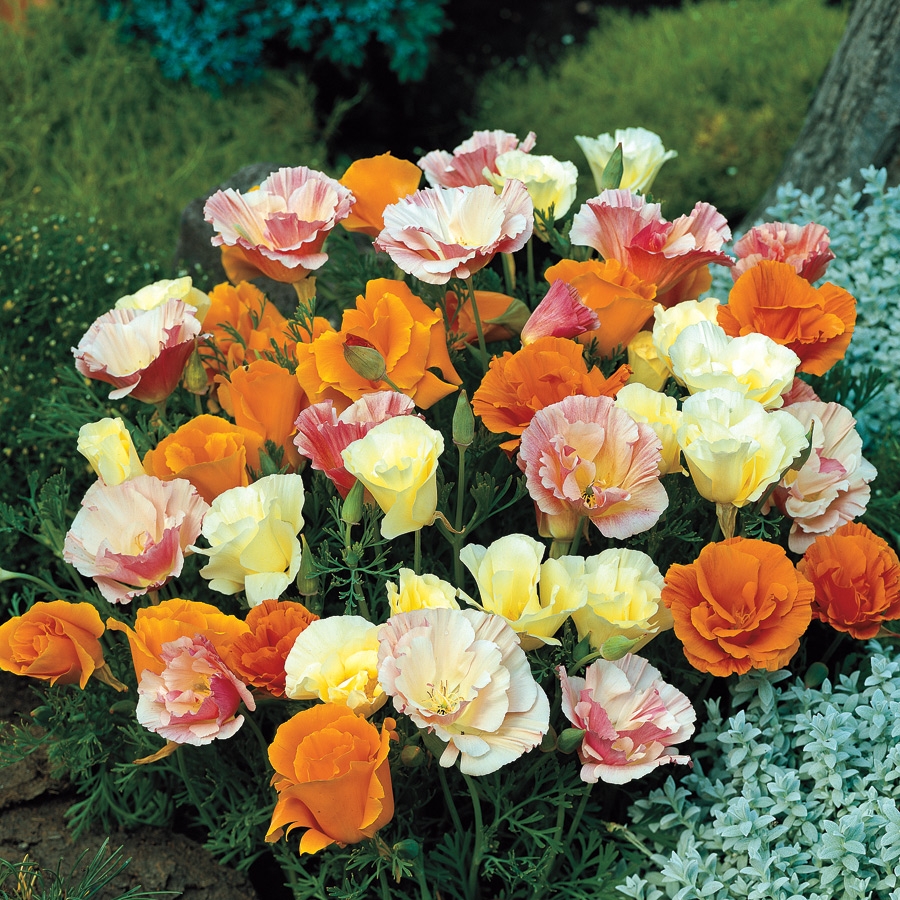 ОднолетнееСмесь ярких разноцветных махровых соцветий, которые будут идеально смотреться на лужайках или в миксбордере. Они также хорошо подойдут к бордюрным посадкам, особенно если сочетать их с растениями с крупными зелёными листьями. Также небольшие группы эшшольции часто высаживают рядом с кустарниками.