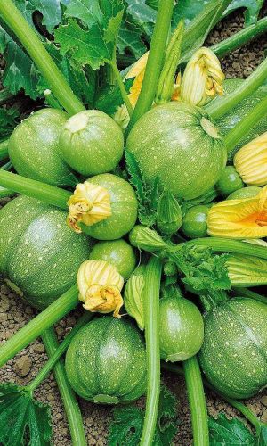 Очень ранний сорт с компактным кустом, без плетей и плодами круглой формы. Плоды диаметром 15 см, с тонкой и нежной кожурой.Сорт, безоговорочно, станет самым любимым у хозяек, так как кабачок имеет не только оригинальный вид, но и прекрасный вкус. У цуккини – минимум семян...