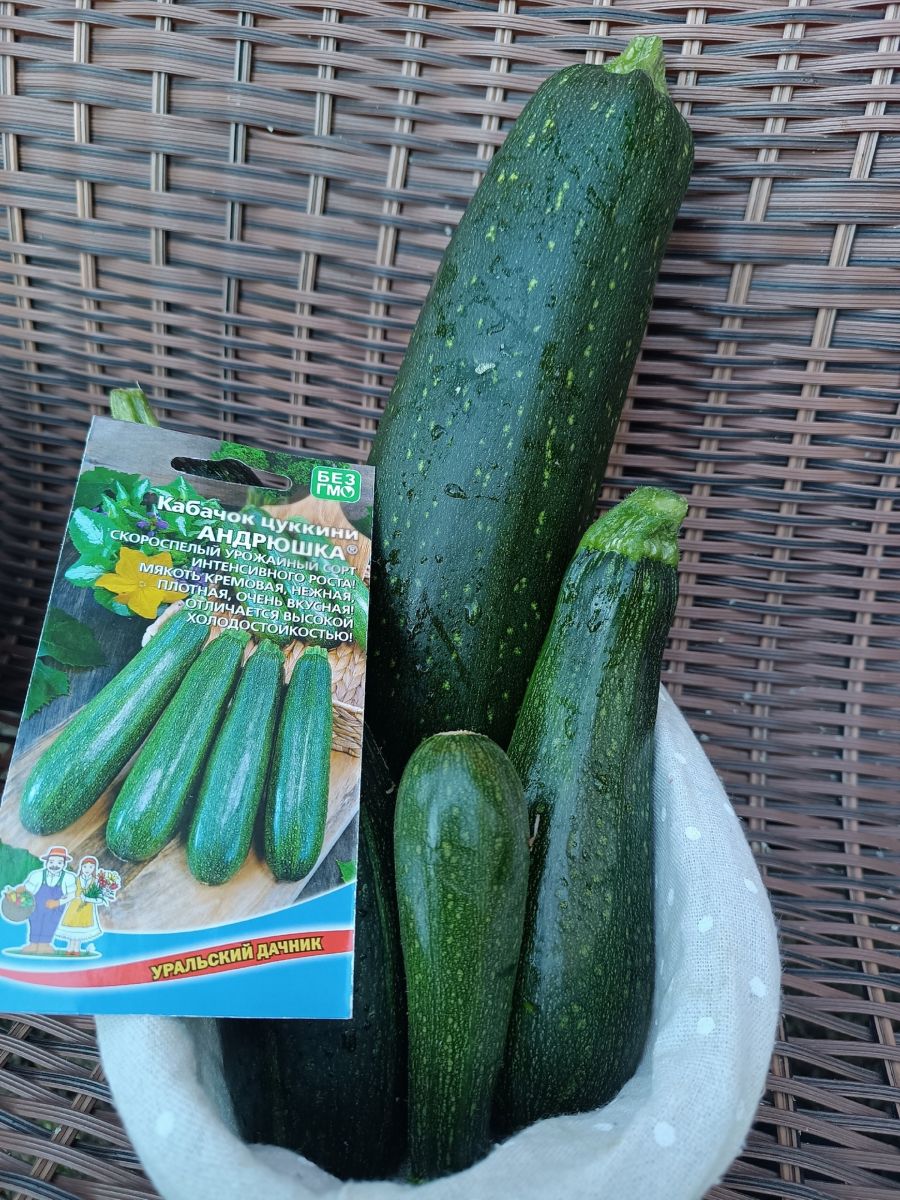 Скороспелый (47-50 дней) сорт. Растение кустовое, мощное, лист среднерассечённый. Плоды тёмно-зелёные, цилиндрические, гладкие, слегка ребристые, выровненные, длиной в съёмной спелости 15-20 см, при выращивании для зимнего хранения – до 70-80 см. Мякоть бело-кремовая, нежная, плотная. Вкусовые качества высокие.