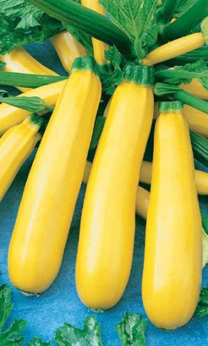 Новый, высокоурожайный среднеранний сорт, период от всходов до первого сбора 45-50 дней. Растения кустовые, компактные. Плоды удлинённо-цилиндрические, массой 0,6-0,8 кг, привлекательного внешнего вида, выравненные, не перерастают. Мякоть жёлтая, нежная, сочная. Вкусовые качества отличные. Рекомендуется для домашней кулинарии. Сорт отличается высоким завязыванием плодов при любых погодных условиях...