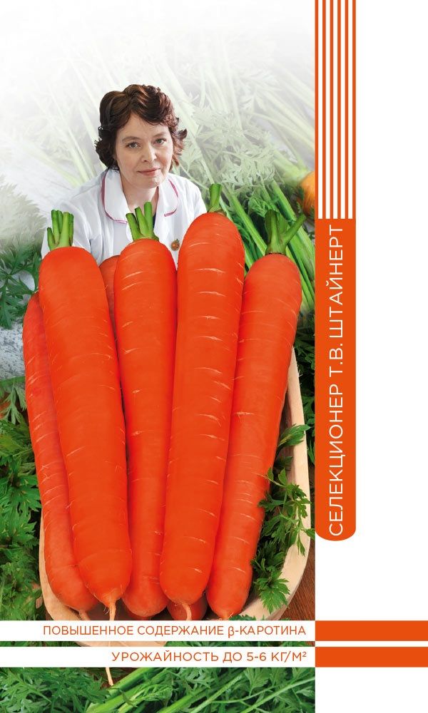 Известный среднеранний сорт моркови. Урожай созревает через 95-105 дней после всходов. Корнеплоды красивые и вкусные, сочные, массой до 120-170 г, с ярко-оранжевой сердцевиной и корой. Сорт выделяется высокой урожайностью, пластичностью к условиям выращивания и великолепными товарными качествами. Оптимальное содержание сахаров, сухого вещества и каротина, которые определяют универсальность использования: свежее потребление, домашняя кулинария, приготовление витаминных соков, детское питание...