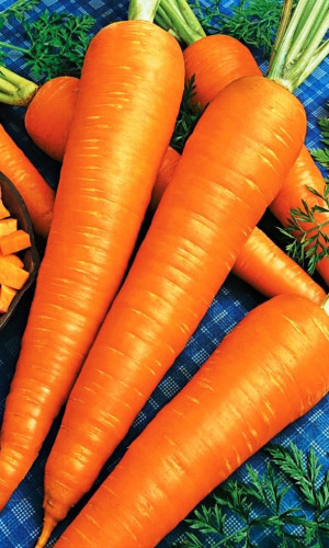 Стабильно урожайный, среднеспелый гибрид. Корнеплоды оранжевые, цилиндрические, с тупым кончиком, длиной 18-20 см, сочные, сладкие, отличного вкуса, с высоким содержанием каротина. Корнеплоды не перерастают и не растрескиваются, устойчивы к механическим повреждениям...
