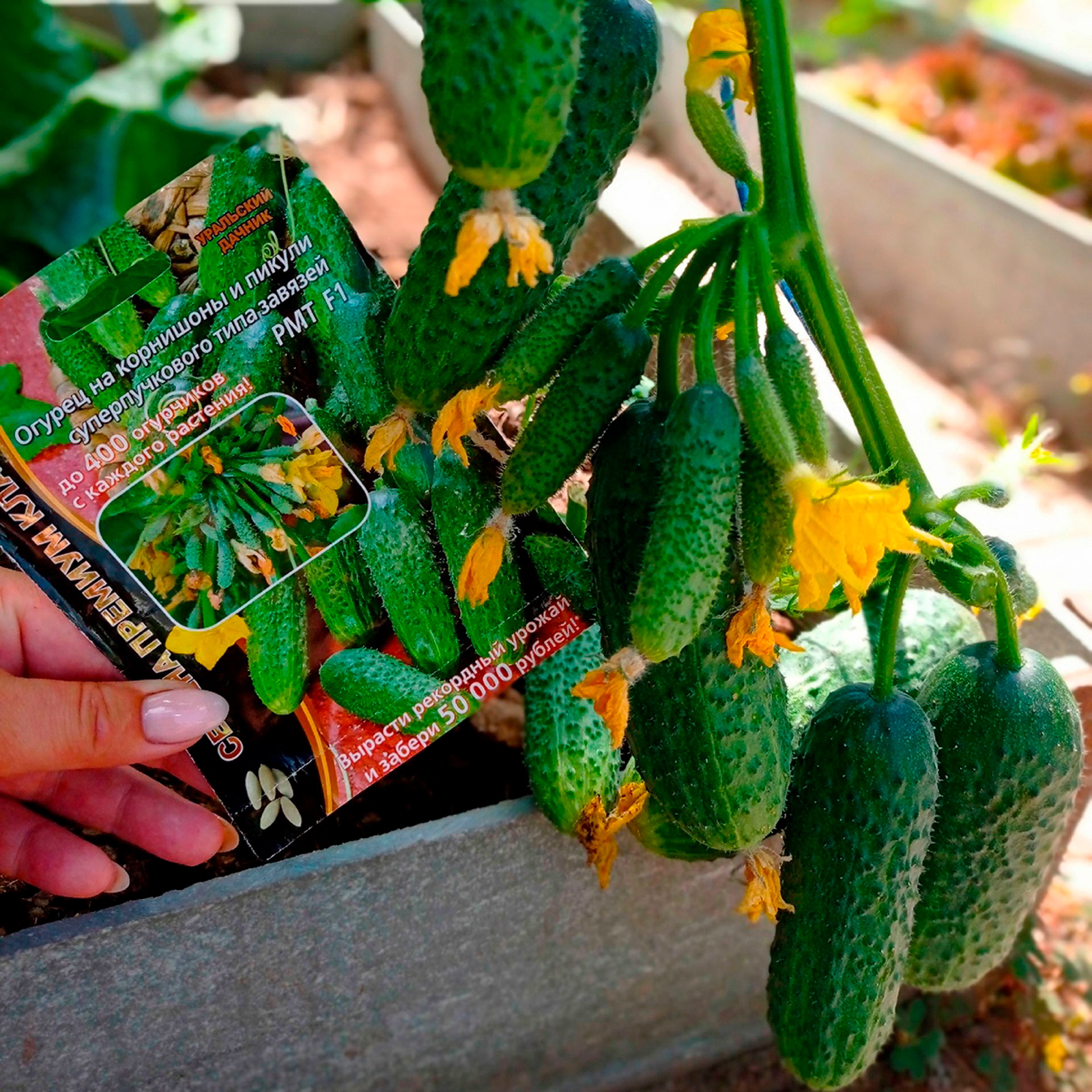 Самоопыляемый! Суперпопулярный пучковый гибрид! Холодостойкий, с длительным плодоношением, до заморозков! Крепкий, обалденно вкусный, хрустящий, без горечи! Создан для засолки! Плоды крупно-бугорчатые, белошипые, длиной 10-12 см, плотные, сладкие. От обилия плодов не видно листьев! Не перерастает, не бывает горьким, не образует пустот при консервировании и засолке...
