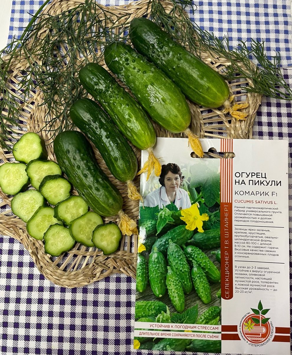 Раннеспелый пчёлоопыляемый гибрид для открытого грунта и плёночных теплиц. От всходов до начала плодоношения 43-46 дней. Растение индетерминантное, плетистое, с крупным листом. Корнишоны цилиндрические, средне- и частобугорчатые, тёмно-зелёные, длиной 10-13 см, плотные, сочные, хрустящие.Ценность гибрида: устойчивость к кладоспориозу, ложной мучнистой росе, обильное плодоношение.Рекомендуется для употребления в свежем виде, всех видов консервирования и засолки...