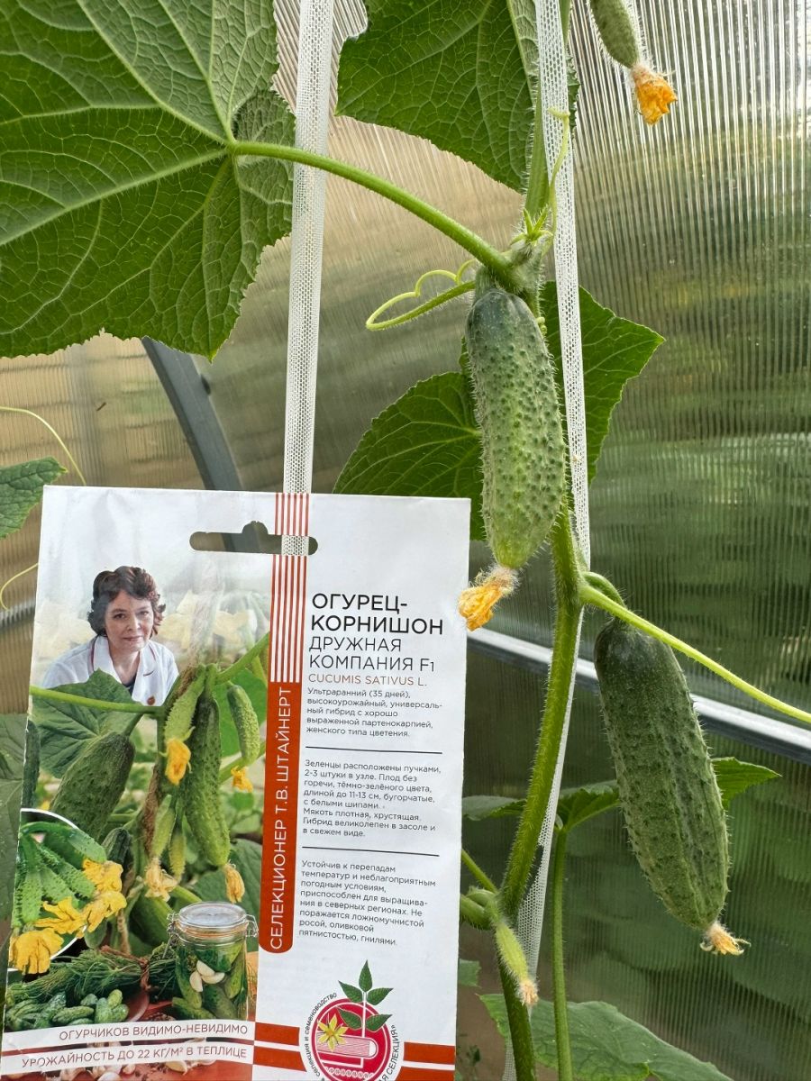 Раннеспелый пчёлоопыляемый гибрид для открытого грунта и плёночных теплиц. От всходов до начала плодоношения 43-46 дней. Растение индетерминантное, плетистое, с крупным листом. Корнишоны цилиндрические, средне- и частобугорчатые, тёмно-зелёные, длиной 10-13 см, плотные, сочные, хрустящие.Ценность гибрида: устойчивость к кладоспориозу, ложной мучнистой росе, обильное плодоношение.Рекомендуется для употребления в свежем виде, всех видов консервирования и засолки...