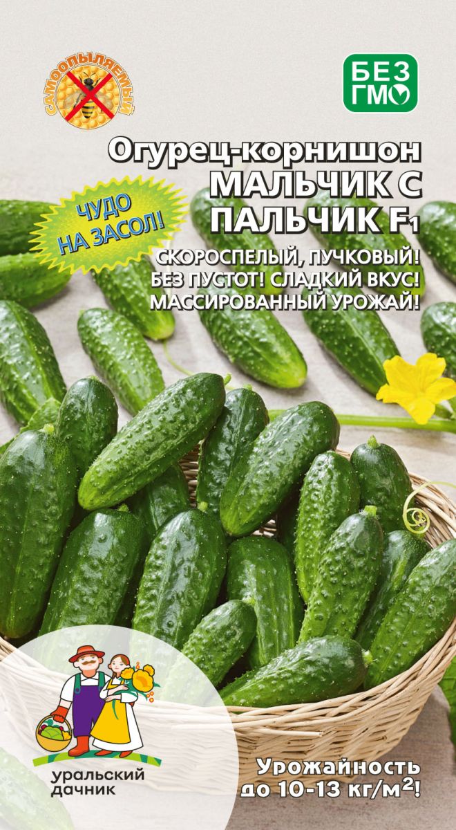 Раннеспелый пчёлоопыляемый гибрид для открытого грунта и плёночных теплиц. От всходов до начала плодоношения 43-46 дней. Растение индетерминантное, плетистое, с крупным листом. Корнишоны цилиндрические, средне- и частобугорчатые, тёмно-зелёные, длиной 10-13 см, плотные, сочные, хрустящие.Ценность гибрида: устойчивость к кладоспориозу, ложной мучнистой росе, обильное плодоношение.Рекомендуется для употребления в свежем виде, всех видов консервирования и засолки...