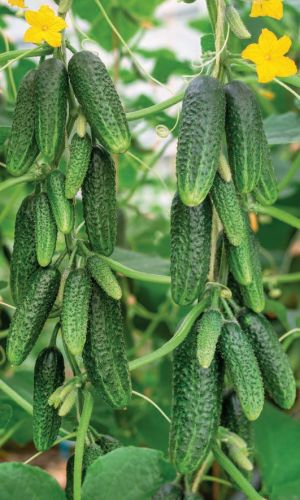 Раннеспелый пчёлоопыляемый гибрид для открытого грунта и плёночных теплиц. От всходов до начала плодоношения 43-46 дней. Растение индетерминантное, плетистое, с крупным листом. Корнишоны цилиндрические, средне- и частобугорчатые, тёмно-зелёные, длиной 10-13 см, плотные, сочные, хрустящие.Ценность гибрида: устойчивость к кладоспориозу, ложной мучнистой росе, обильное плодоношение.Рекомендуется для употребления в свежем виде, всех видов консервирования и засолки...