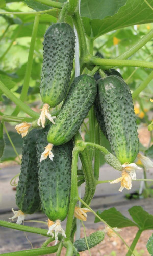 Великолепная урожайность и длительное плодоношение даже в неблагоприятных погодных условиях. Раннеспелый, пучкового типа. Плоды тёмно-зелёные, среднебугорчатые, длиной 6-9 см, крепкие, хрустящие, сочные, ароматные, универсального назначения (для приготовления салатов,...