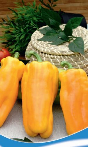 Раннеспелый (105-110 дней) сорт для открытого грунта и пленочных укрытий. Растение среднерослое, слабораскидистое, высотой 55-60 см. Плоды крупные, кубовидные, сильноглянцевые, в технической спелости тёмно-зелёные, в биологической – ярко-оранжевые, массой 150-200 г, толщина стенки...