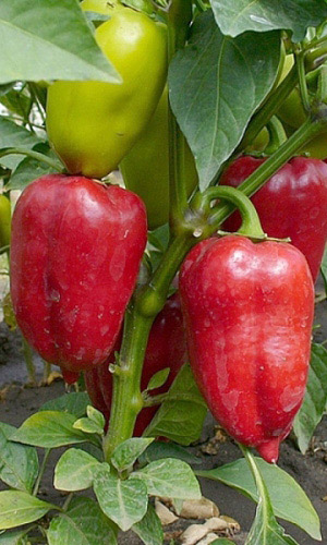 Среднеспелый сорт для открытого грунта и плёночных теплиц. Период от всходов до созревания плодов 105-120 дней. Растение высотой 45-55 см, раскидистое. Плоды конусовидные, красные. Поверхность гладкая. Толщина стенки плода 4-4,5 мм. Масса 50-60 г.Посев на рассаду в в конце февраля -...