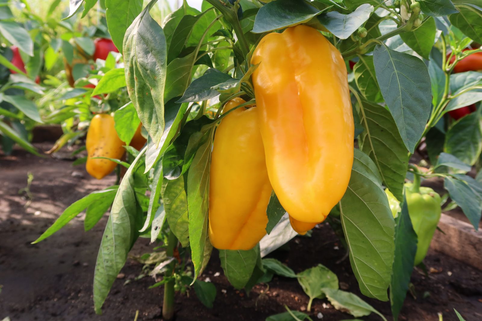 Растение очень мощное, раскидистое, с хорошей завязываемостью плодов, одновременно формирует до 10 однородных плодов, средней массой 240-260 г (18x9 см). Плоды кубовидно-цилиндрической формы, четырехкамерные, толстостенные (7-8 мм), созревают из тёмно-зелёных в золотисто-жёлтые. Гибрид высоких вкусовых достоинств, имеет приятный сладковатый вкус и нежный печеный аромат. По богатству витаминно-минерального комплекса желтый перец превосходит перцы другого цвета.
