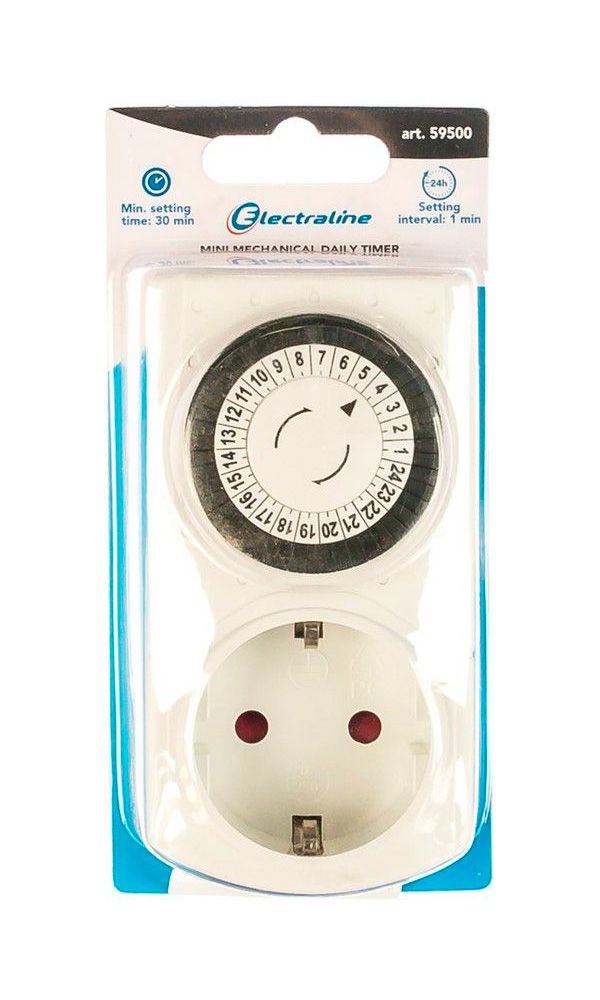 Этот прибор предназначен для управления подсветкой для растений и бытовыми устройствами, подключенными через него к розетке. Его корпус изготовлен из пластика и оснащён 48 переключателями, которые позволяют устанавливать время с интервалом в 30 минут. Устройство функционирует циклами по 24 часа.
