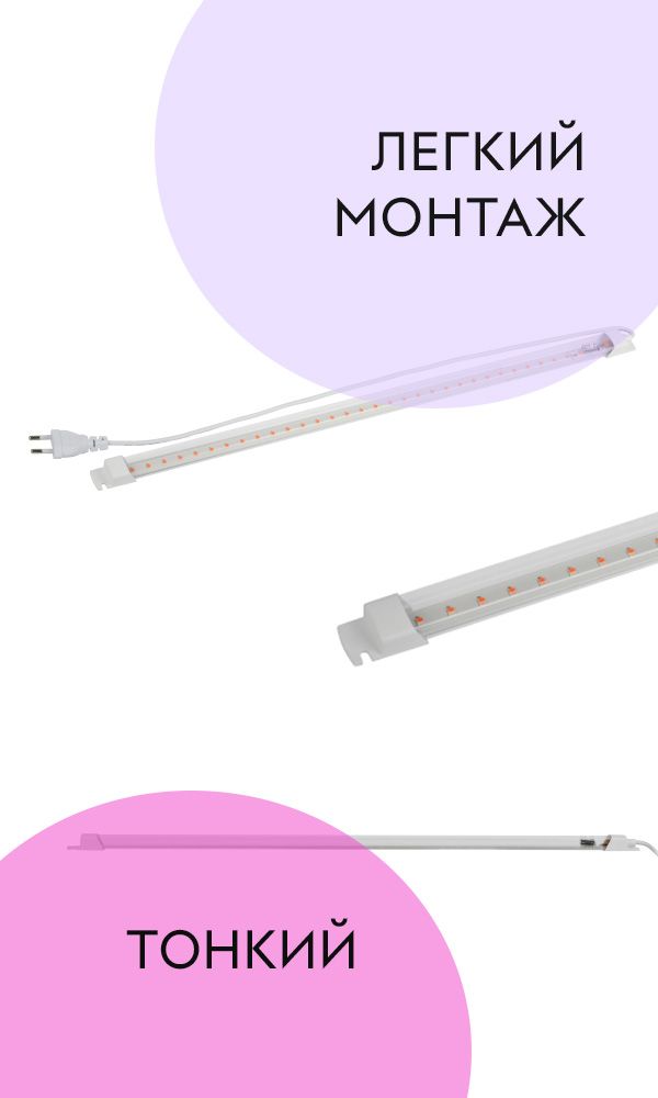 Современный дизайн и компактные размеры позволят вам использовать эти светильники практически в любом уголке вашего дома. Несмотря на размеры, светильник обладает мощностью 10 Вт. Тонкий корпус светильника легко монтируется на любые стелажи, не заметен в интерьере, его лего спрятать. Длина шнура с вилкой 50 см, длина корпуса светильника 53 см.