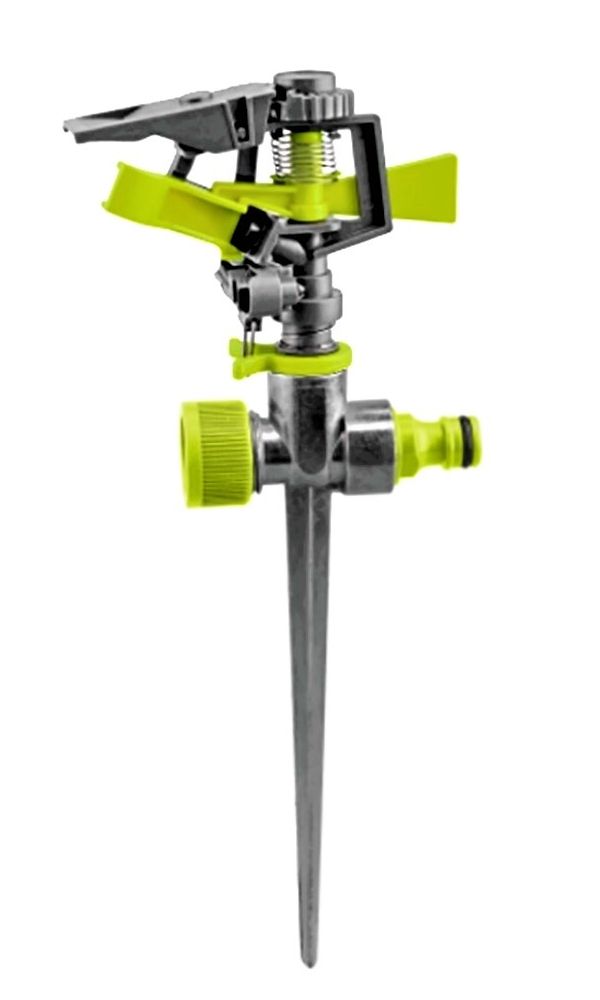 Применяется для полива растений. Рассчитан на большие площади полива. Проходная форма, с двумя соединительными гнездами, обеспечивает использование его в системе полива. Пика надежно фиксирует разбрызгиватель в почве.