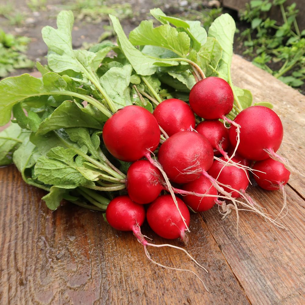 Проявлять беспокойство по поводу того, что корнеплод может образовать цветоносы, не стоит – Шустрёнок на это не способен, благодаря чему подходит для возделывания с ранней весны до глубокой осени и на открытых территориях, и в закрытом грунте. Гибрид неприхотлив, с хорошим иммунитетом (обладает устойчивостью к фузариозному увяданию и черной ножке) и уникальной особенностью не менять товарного вида и вкусовых качеств, даже если перерастёт. Шустрёнка можно выращивать до больших размеров, и он будет без пустот и таким же вкусным, как его меньшие братья. Корнеплод округлый, ярко-красный, достаточно крупный – 6-7 см в диаметре, весом до 30-35 г. Мякоть у него – чистые белила, нежная, сочная, с лёгкой остринкой. Шустрёнок – безумно смачный «малыш»!