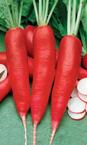 Стабильно урожайный раннеспелый сорт. Корнеплод конической формы, розово-красный, массой 120-180 г, мякоть белая, сочная, сладко-острая...