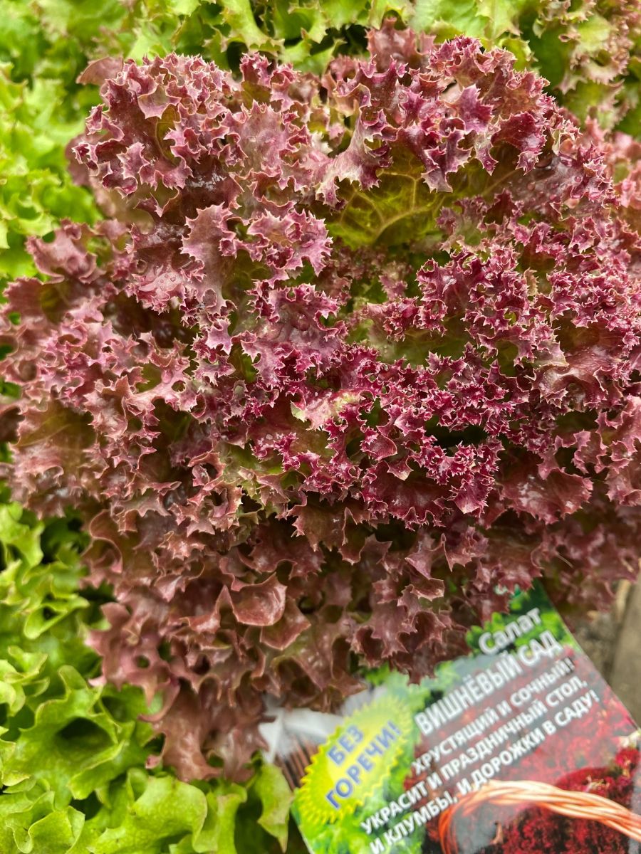 Высокоурожайный раннеспелый листовой сорт. Листья декоративные, гофрированные, красно-малиновые, нежные, хрустящие, формируют розетку диаметром 20-25 см.