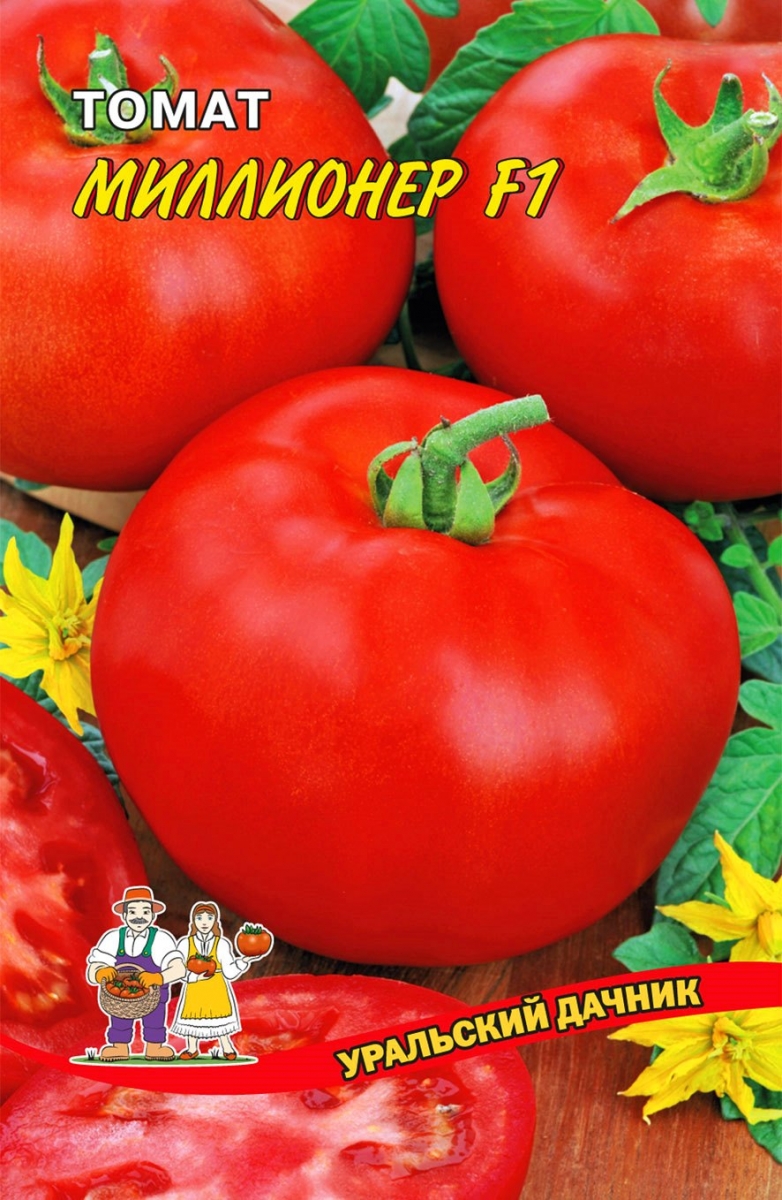 Представитель детерминантного типа томатов для открытого грунта, на который следует обратить внимание, гибрид МИЛЛИОНЕР. Уникальность его в том, что он очень высокопродуктивный и ультрараннего срока созревания – получить ароматные томаты можно всего за 70-80 дней. Более того, Миллионер F1 совершенно не доставит хлопот, так как неприхотливый к условиям возделывания. То есть этот гибрид не для слабонервных. Почему? Да потому, что соседи вас просто замучают вопросами, отчего вы с утра до вечера с кустами не возитесь, а на грядках с томатами красным-красно, тогда как они дни на пролет пластаются, но лишь зелененькие помидорки висят.