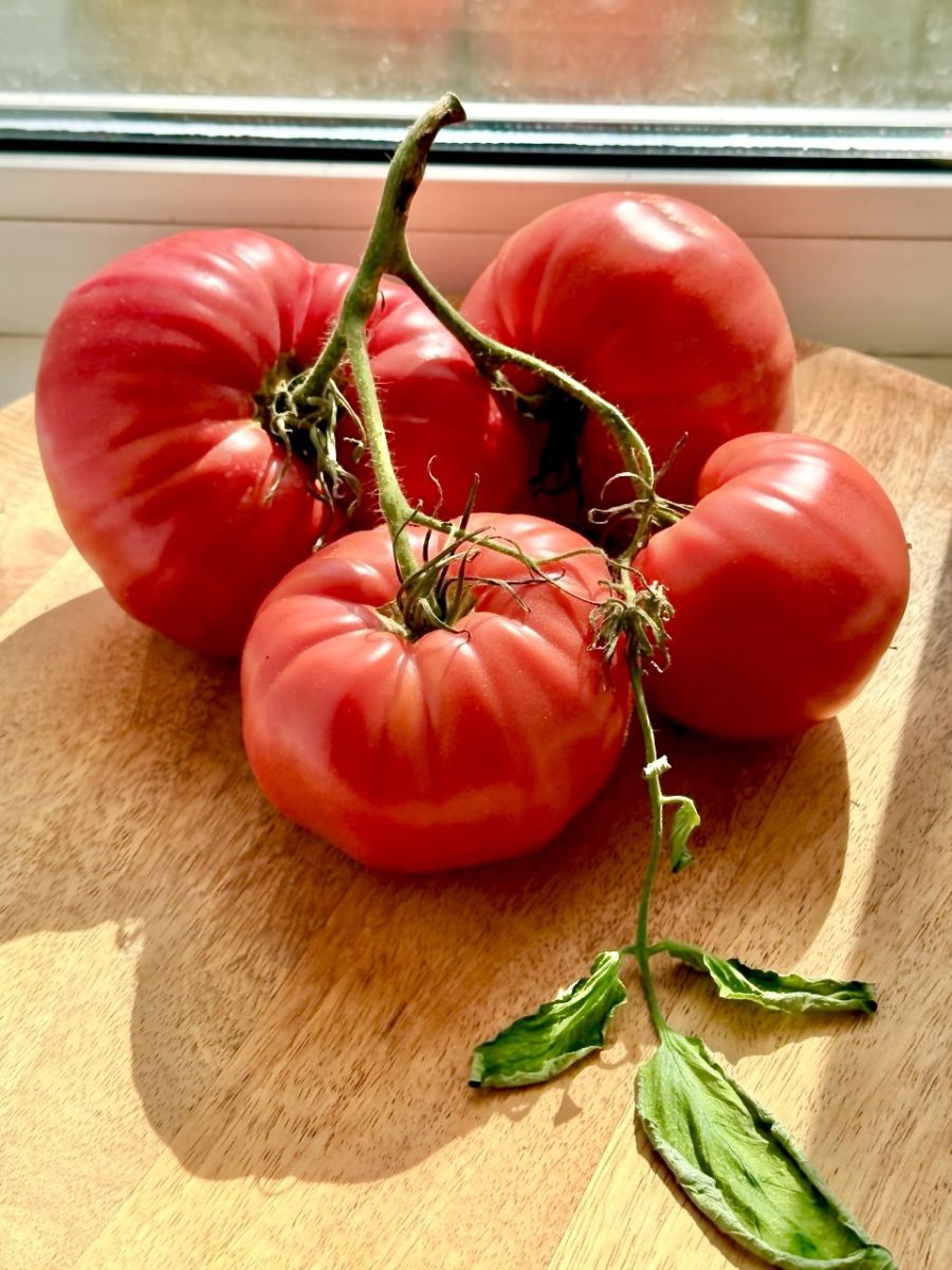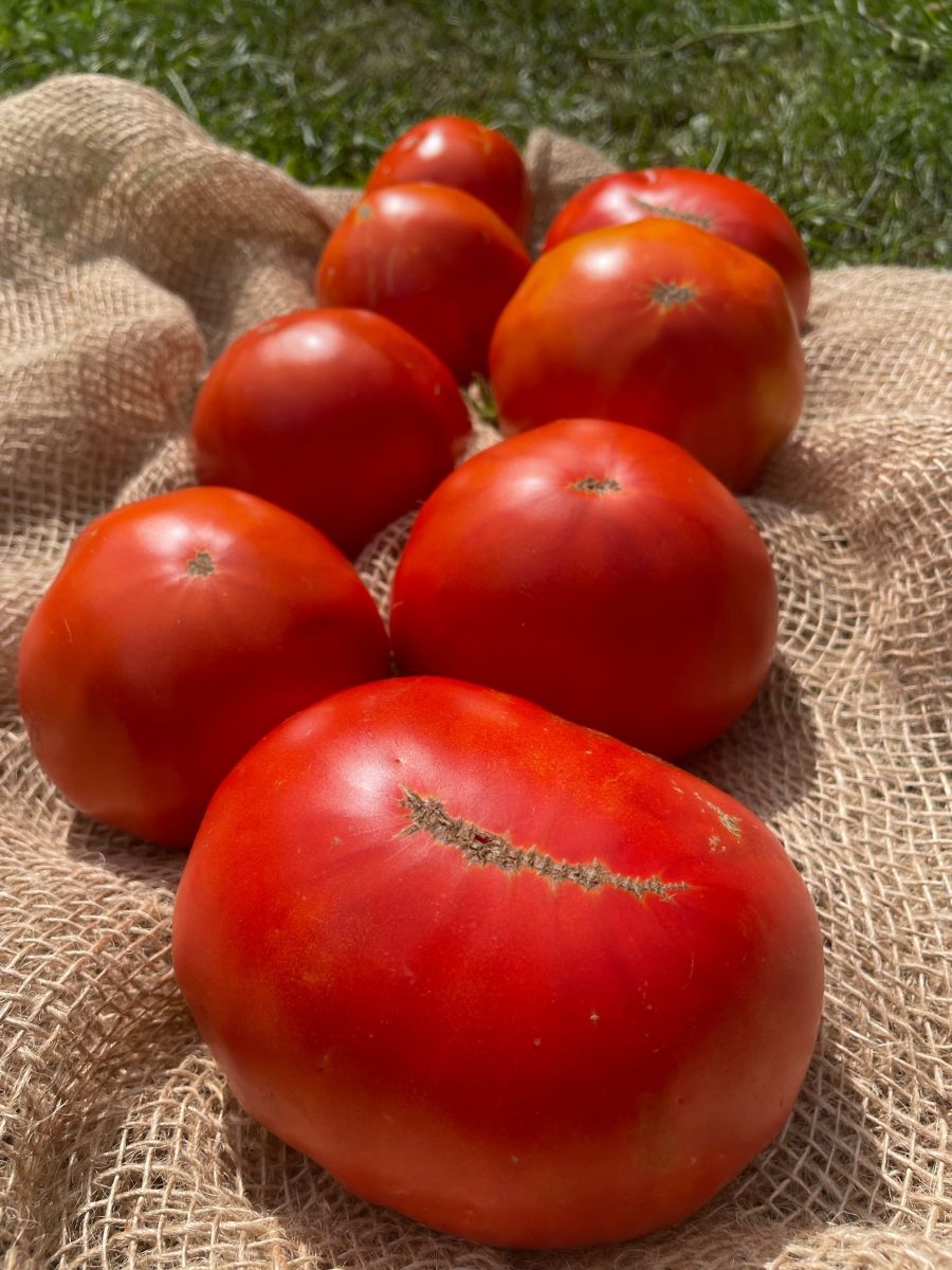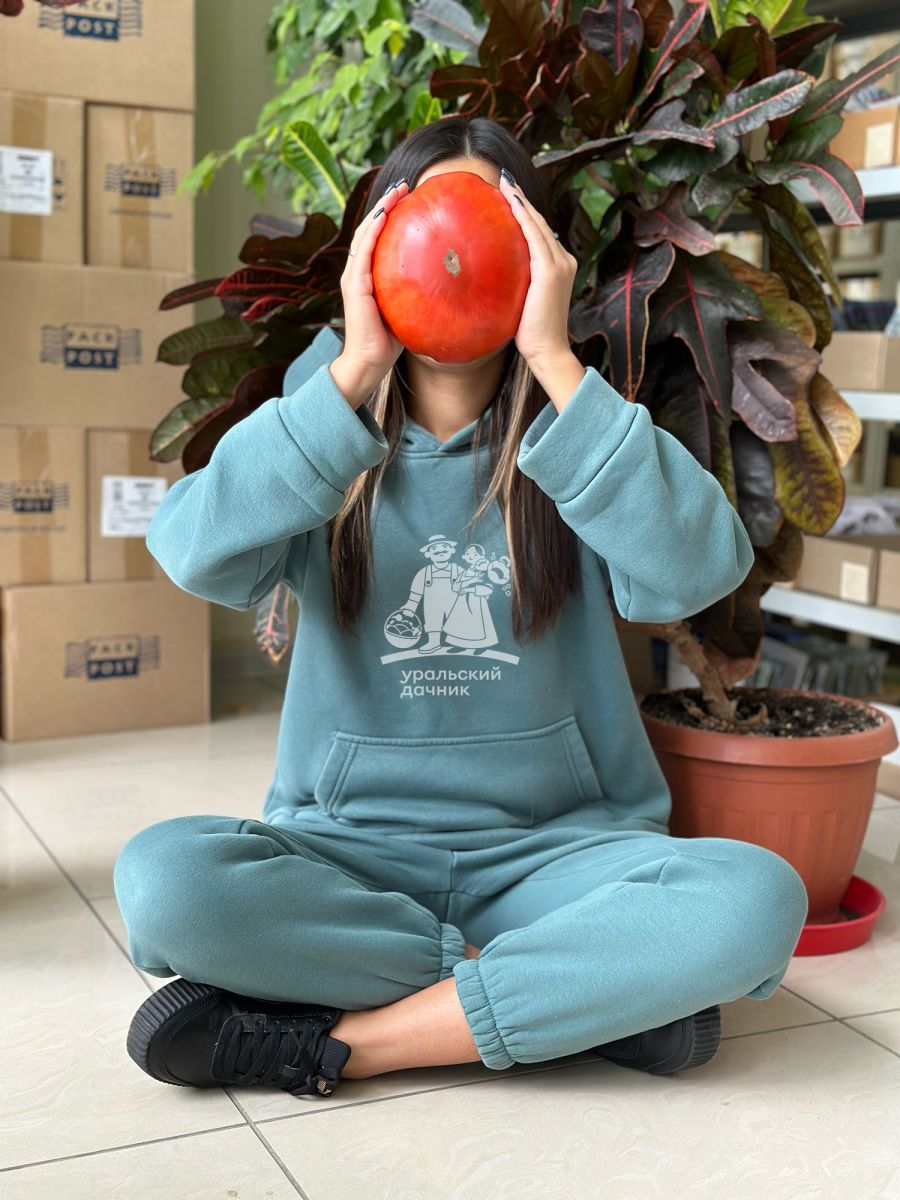 Плоды первых кистей особо крупного размера, весом до 1 кг, способны накормить вкусным салатом целую семью! Сорт среднеспелый, светолюбивый, хорошо плодоносит в открытом грунте, даже предпочтительнее, чем в теплице. Урожайность до 10 кг/м2. Растение среднерослое, высотой до 1,5 м. Плоды гладкие, округло-плоские, красно-малинового цвета, плотные, с сахаристой мякотью и малым количеством семян, устойчивые к растрескиванию. Сорт отзывчив к поливу и регулярным подкормкам комплексными удобрениями, чувствителен к недостатку бора и калия в почве.