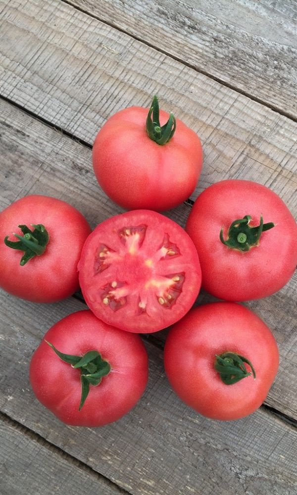 Ультраскороспелый, неприхотливый и урожайный сорт универсального назначения. Высота — 60-70 см. Плоды розовые, округлые, гладкие, мясистые, массой 90-100 г, сладкие.