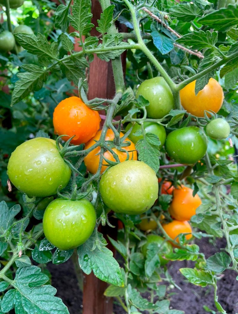 Среднеранний индетерминантный сорт. Предназначен для выращивания в теплицах и парниках с отличной завязываемостью плодов при сложных погодных условиях. Растение кистевого типа, высотой около 2 м. В кисти по 6-7 плодов, весом 80-90 г. Плоды имеют жёлтую с красноватым румянцем окраску снаружи и красного цвета мякоти внутри.