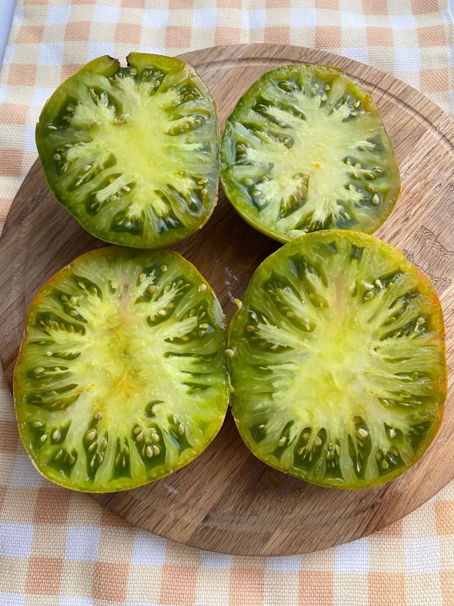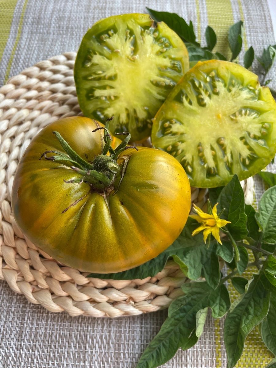 Закрытый грунтСреднеранний гибрид для открытого грунта и плёночных теплиц. Окраска незрелого плода зелёная с тёмно-зелёным пятном у плодоножки, зрелого – изумрудно-зелёная с лимонным оттенком. На вкус очень сладкие, изысканные, сочные, мясистые. Растение среднерослое, раскидистое, мощное. Плоды крупные, многокамерные, плоско-округлой формы, массой 200-350 г (в кисти до 7 плодов).