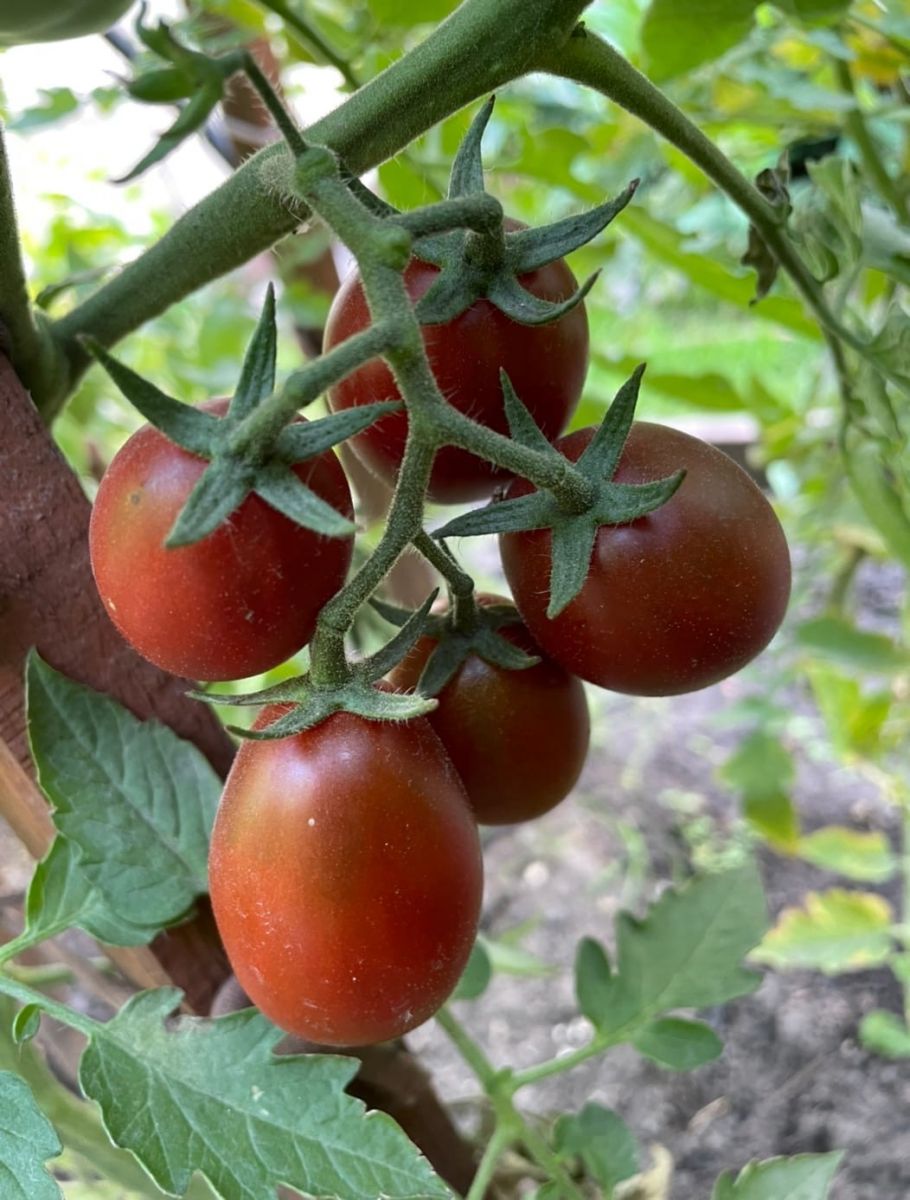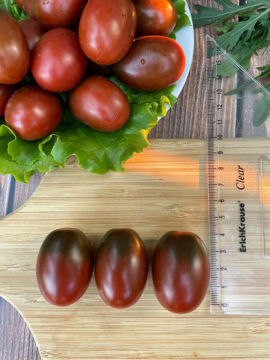 Очень урожайный индетерминантный сорт для закрытого грунта. Плоды оригинальной яйцевидной формы, цвета тёмной вишни, массой 50-70 г, очень сладкие.
