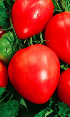Очень урожайный, среднеспелый сорт для теплиц и парников. Растение высотой 1,1-1,8 м требует подвязки в защищённом грунте. На главном стебле закладывается 5-6 кистей, с 4-5 плодами на каждой. Плоды ярко-красные, сердцевидной формы, очень крупные (до 800 г), плотные, сочные,...