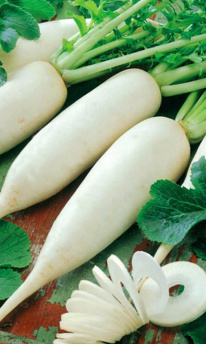 Скороспелый сорт (от всходов до хозяйственной годности 60-70 дней) подходит для выращивания в открытом и защищенном грунте. Корнеплод цилиндрический, гладкий, белый, длиной 1 м, наполовину погружен в почву, массой от 600 до 2500 г. Мякоть сочная и нежная, без горького...